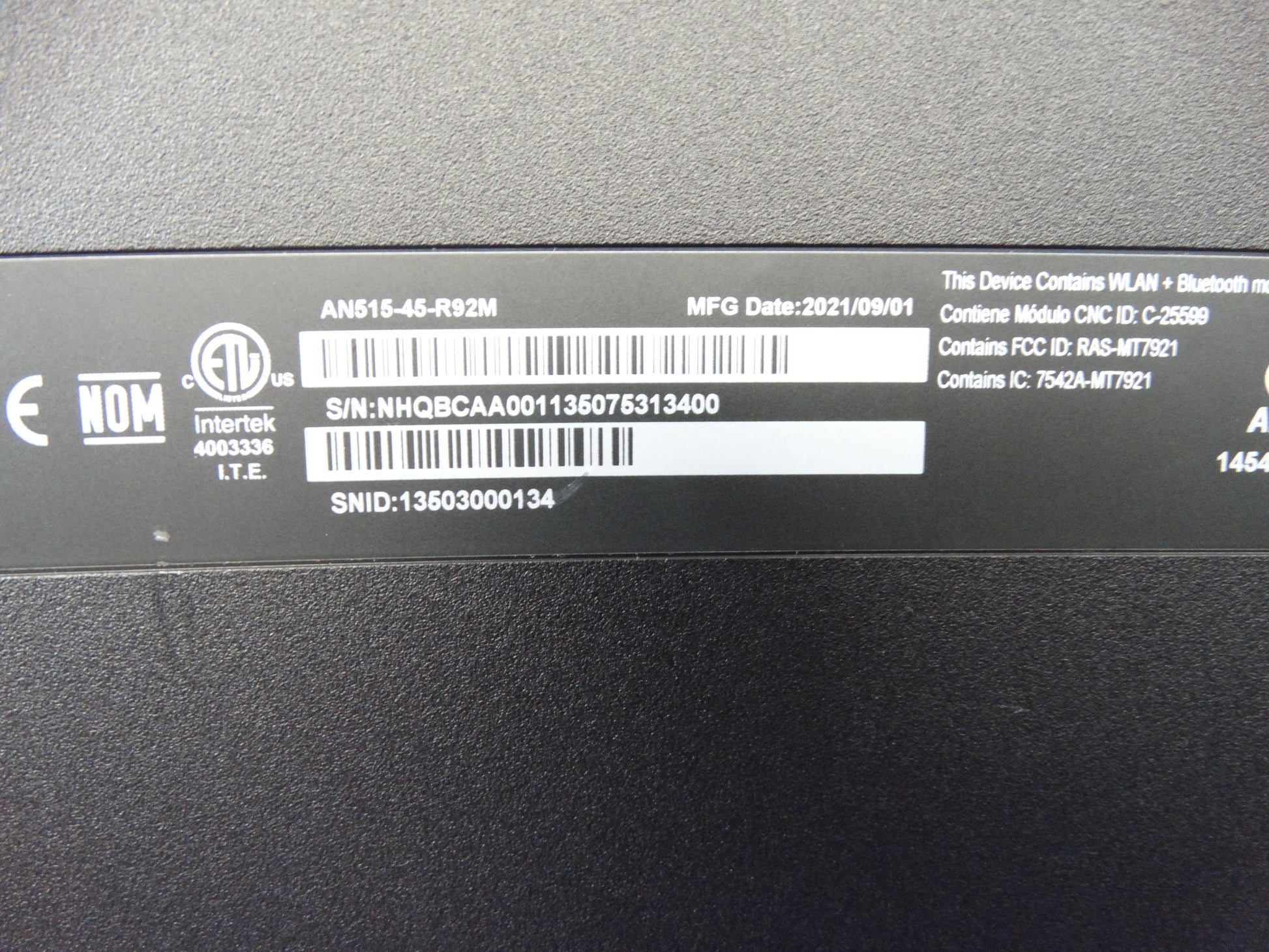 Model: Acer W20C1 ANSIS-45-R92M