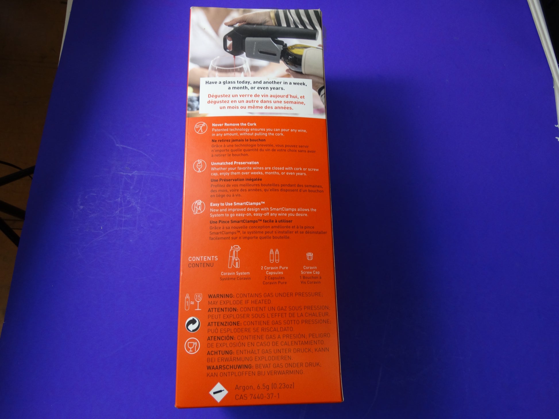 Argon Gas Technology – Protects wine from oxidation after pouring
